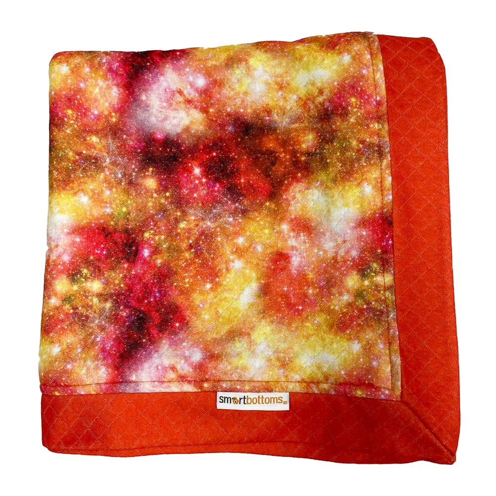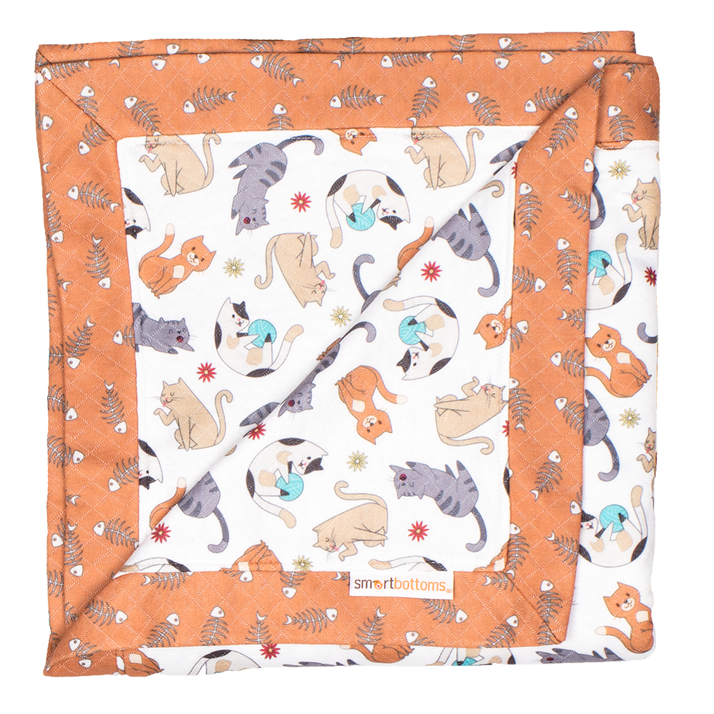 The Smart Bottoms Cuddle Blanket features two sides of printed, quilted organic cotton/ polyester blend fabric. This cozy fabric provides two layers of warmth and weight, with a matching binding that creates a soft, beautiful blanket. The Cuddle Blanket will only get softer with washing, and the print is fade and stain resistant.