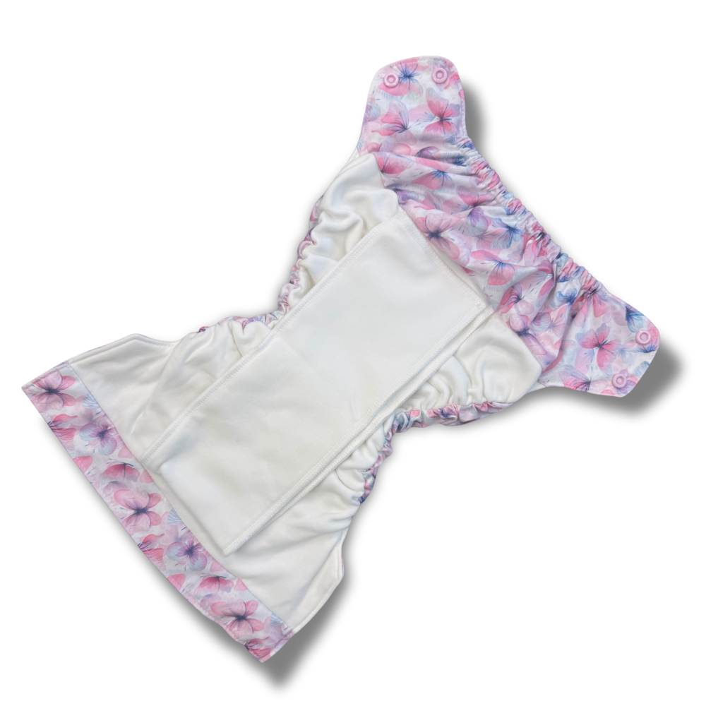 Prep your cloth diaper before first use by washing 1-2 times. This diaper will continue to increase in absorbency as you wash and dry it. Wash and dry warm. Do not use bleach or fabric softener.
