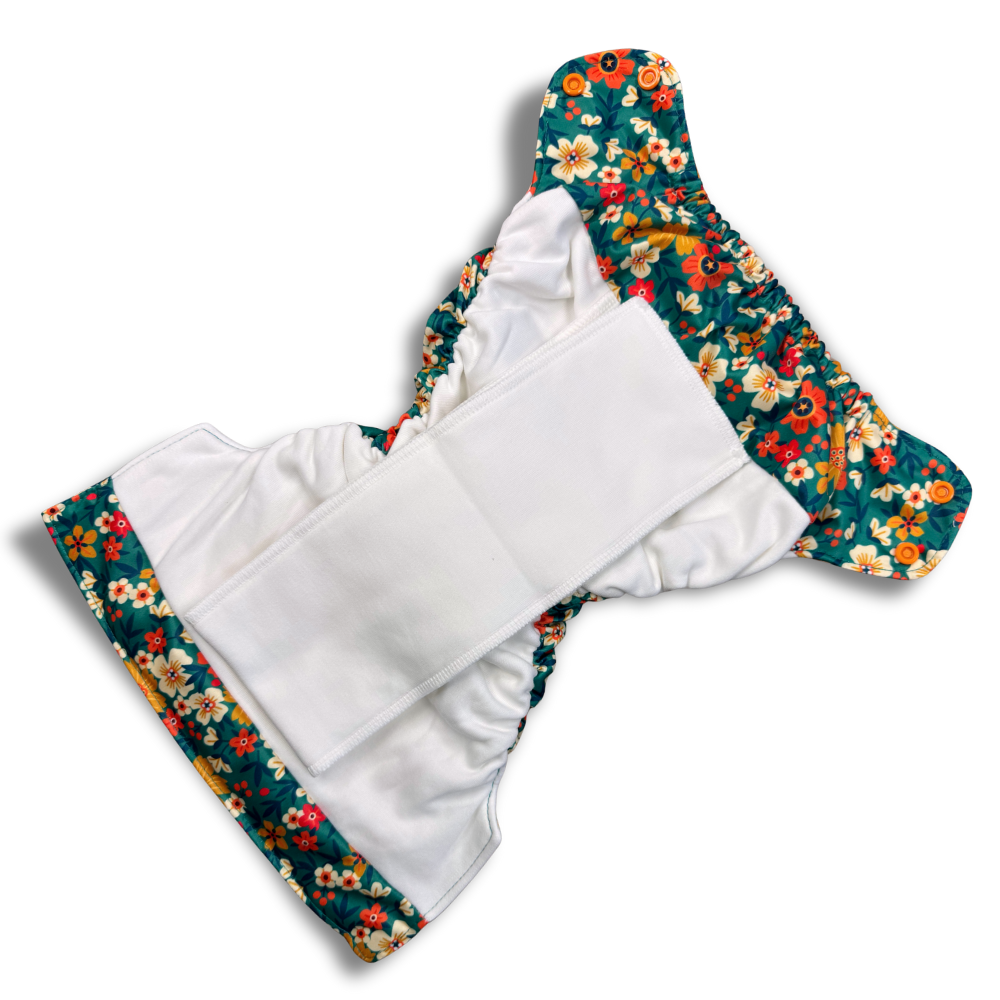 Prep your cloth diaper before first use by washing 1-2 times. This diaper will continue to increase in absorbency as you wash and dry it. Wash and dry warm. Do not use bleach or fabric softener.