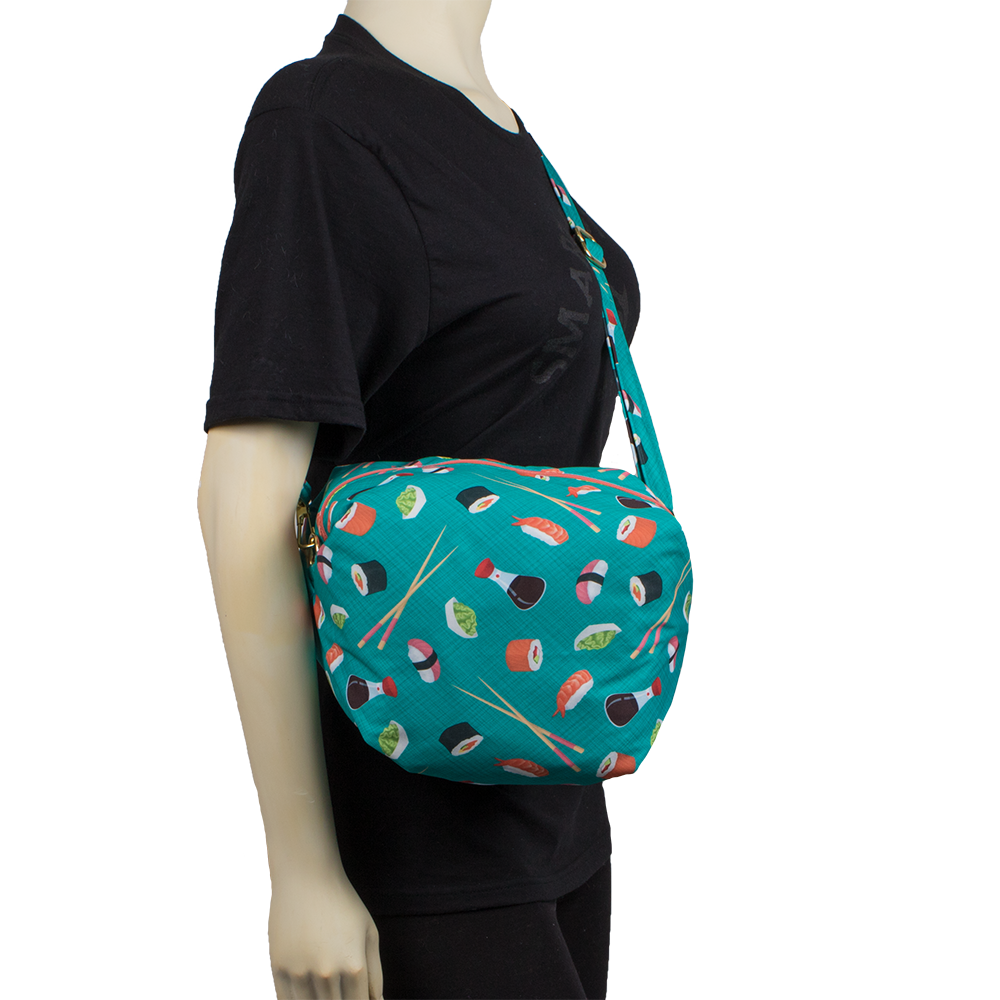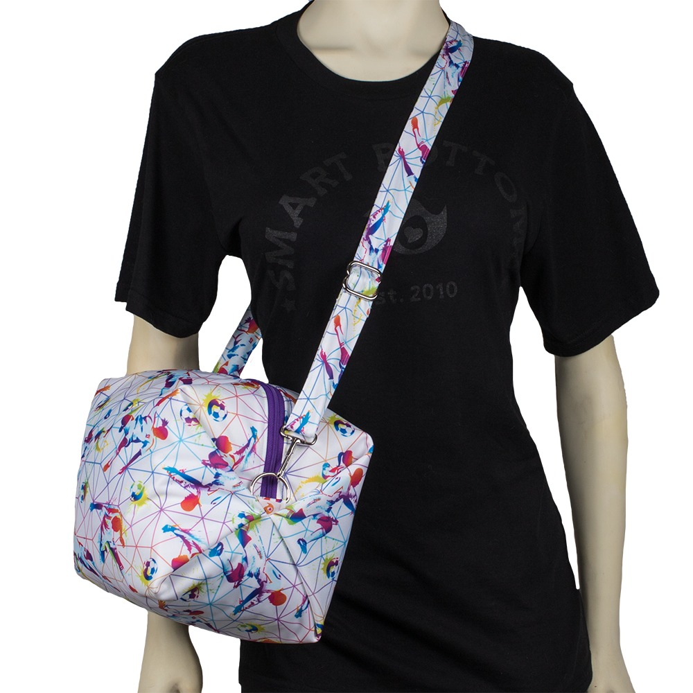 Our Wayfarer Diaper Pod is designed to hold 8-10 cloth diapers. It is waterproof and comes with an adjustable strap and zippered closure.