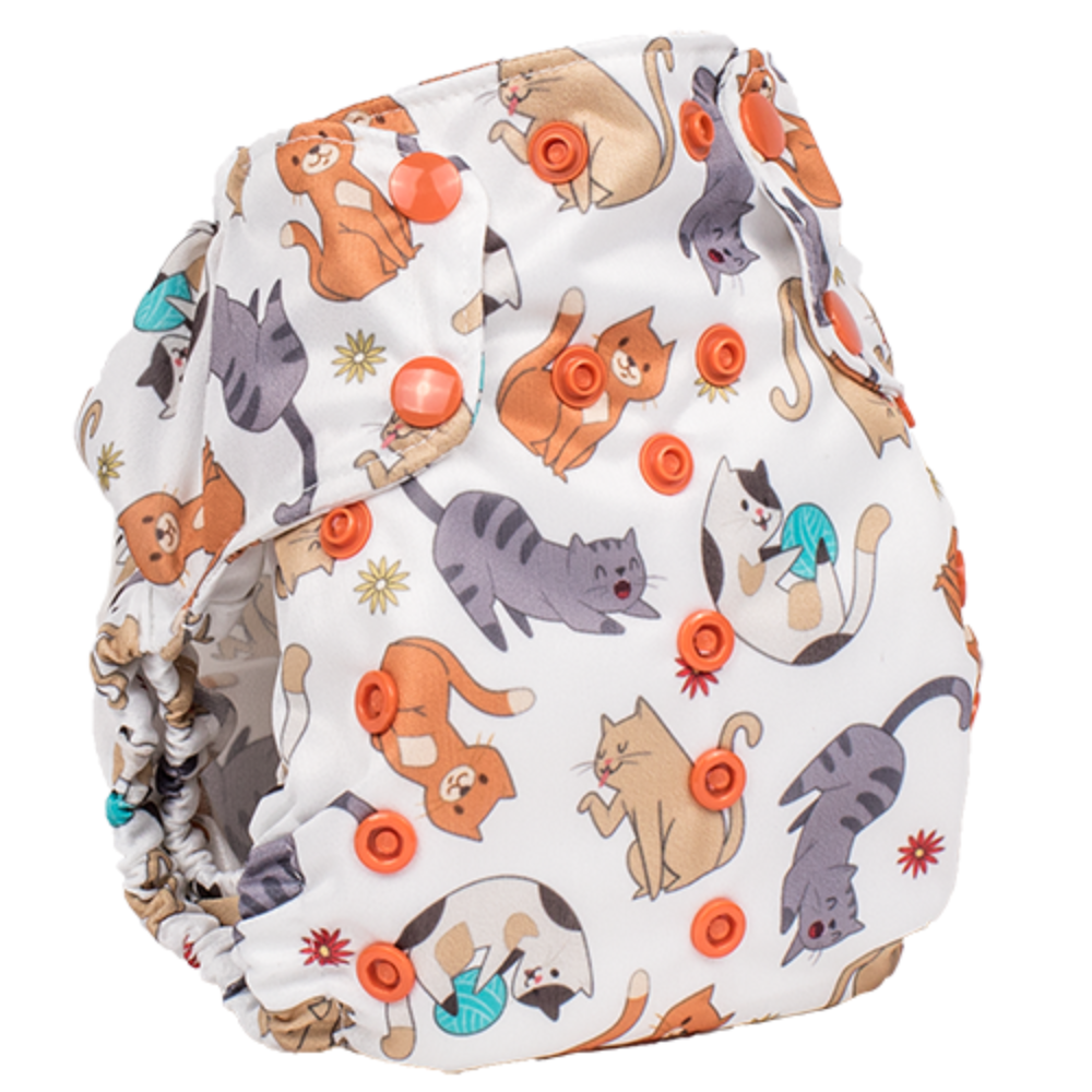 Smart Bottoms' Too Smart Cover fits most babies 10-35 lbs. Our cover features double walled gussets, front and rear interior flaps to hold insert in place and a wipe-able interior. The design and fit of the cover is similar to our 3.1, with four rise settings and 10 sets of snaps across the waist. We recommend a package of too smart inserts for each cover purchased. The cover does not need to be washed after each change, only when soiled or every 24 hours.