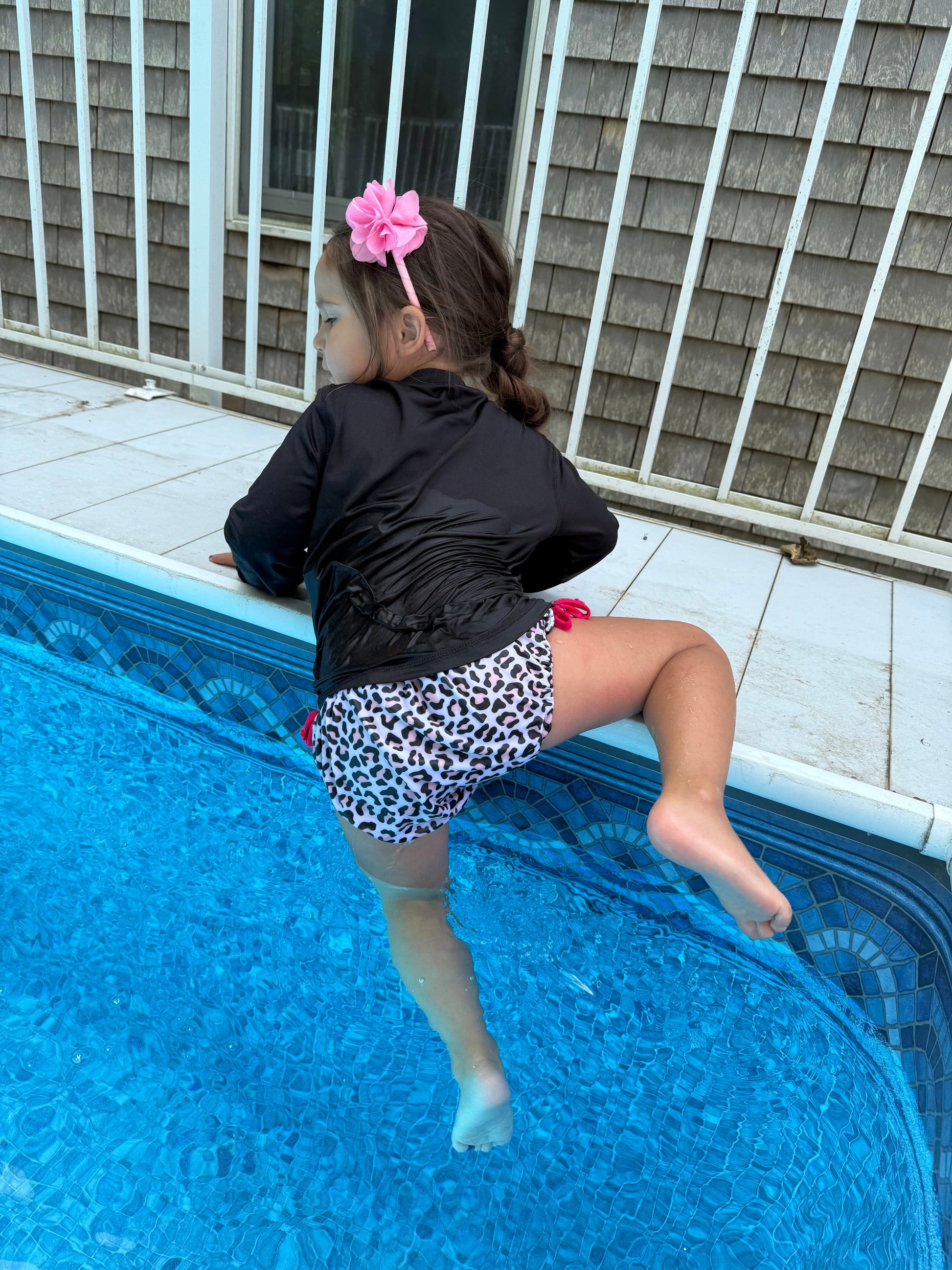 The side-snapping swim diaper from Smart Bottoms features two rows of snaps on each side, allowing you to adjust for the perfect fit.* Our swim diaper is lined with a moisture wicking fabric to help prevent rashes and keep solids contained. This diaper meets the requirements for most public pools. Swim diapers do not require any additional diaper. They are intended to retain solids, not liquids. A reusable absorbent insert may be placed inside when baby is not in the water. We do not recommend any absorbent material be used with this product in the water as it may weigh the child down. This cover may be used over a disposable swim diaper to meet the requirements of public pools. Made in the USA.