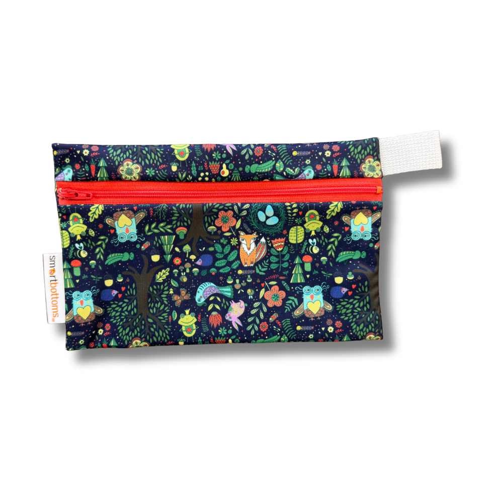 The Mini Wet Bag is the perfect multi-use bag to hold small items like wipes or snacks, and features a small tab that you can loop the snapping handles of your other Smart Bottoms wet bags through. Made in the USA.